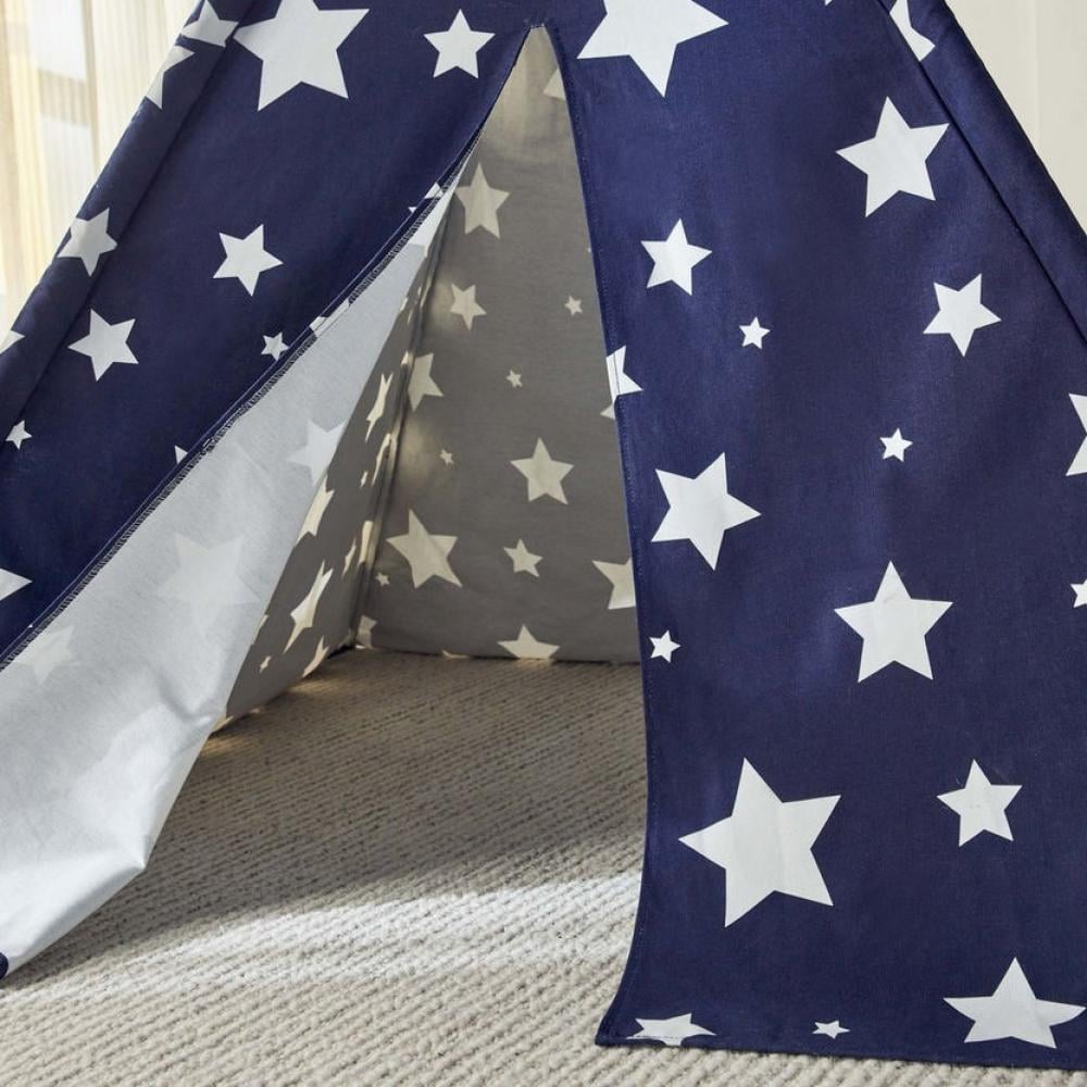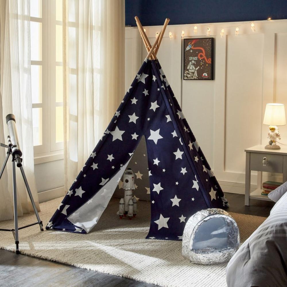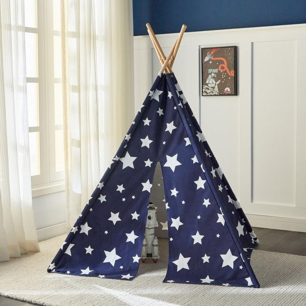 حوّلي غرفة طفلك إلى مساحة لعب ممتعة مع هذه الخيمة المميزة. تتميز بطبعات نابضة بالحياة بألوان متعددة تضيف لمسة حالمة وساحرة للديكور. صُممت من قماش عالي الجودة مع هيكل خشبي قوي لضمان المتانة والاستخدام الطويل، مما يجعلها المكان المفضل لطفلك للعب وقضاء ساعات من المرح بأمان وراحة.
